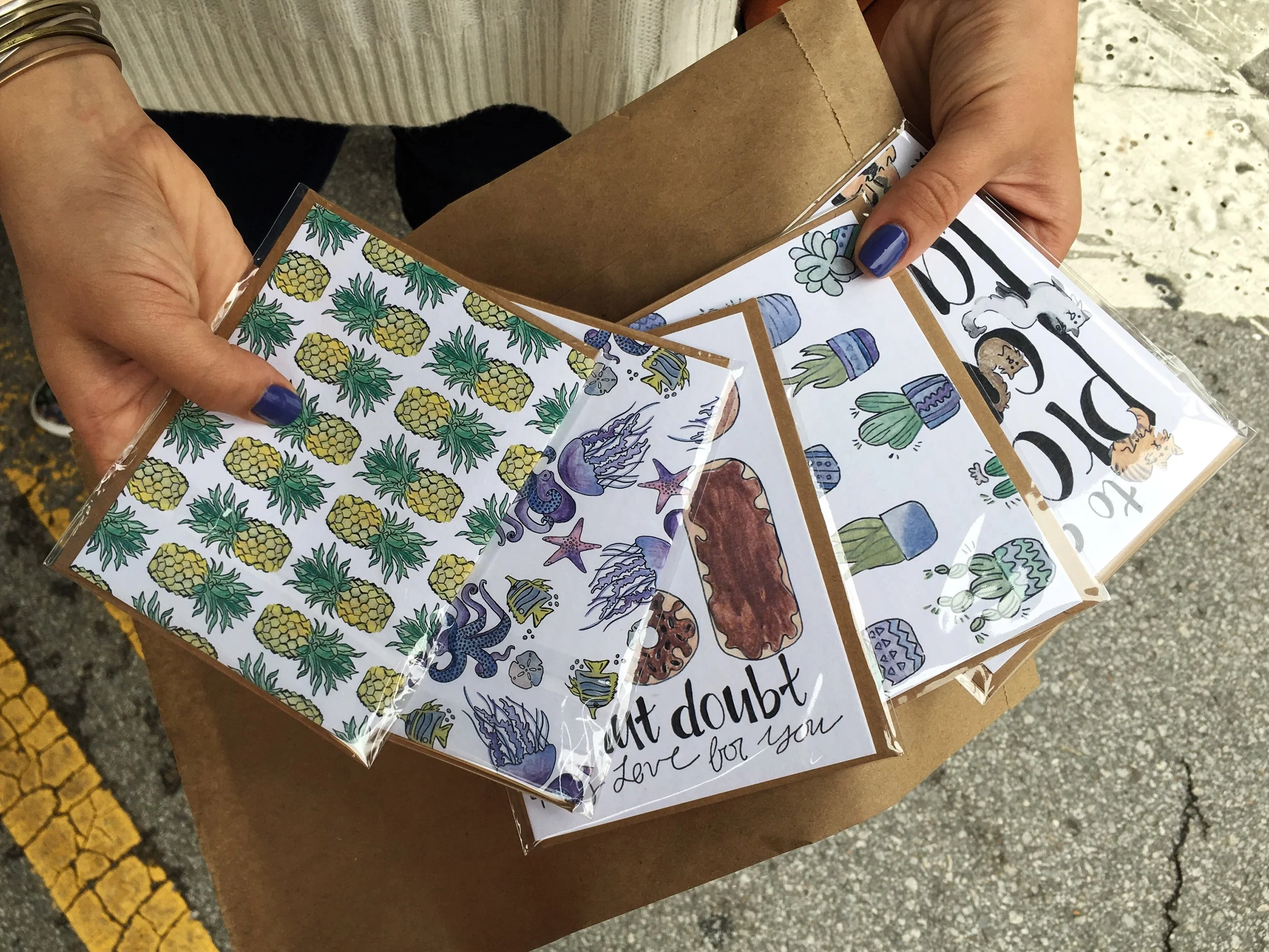 I create whimsical greeting cards, art prints, ornaments, home portraits, stationery, and more. Reach out to shop my collection or for a custom design made just for you.